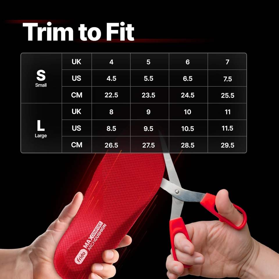 Frido Max Comfort Arch Cushion Insole Unisex Sports Comfort Orthotic Inserts Proprietary Hi-Per Foam Deep Heel Cup Relieves Arch