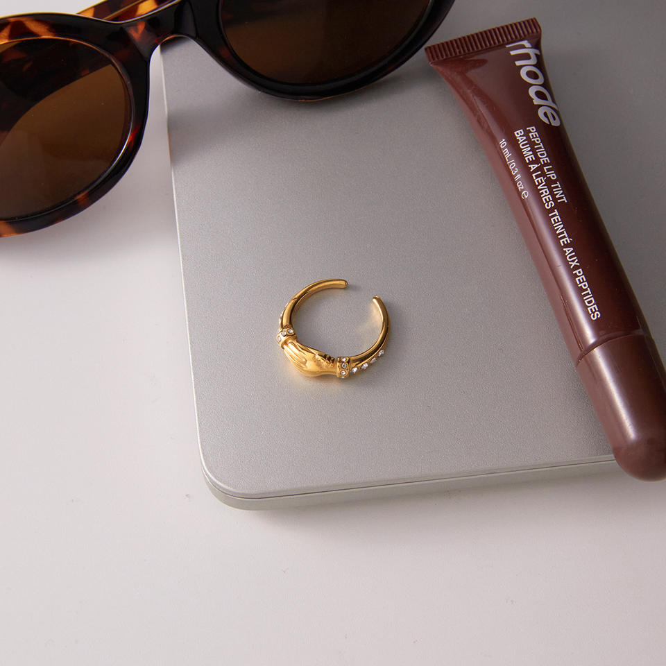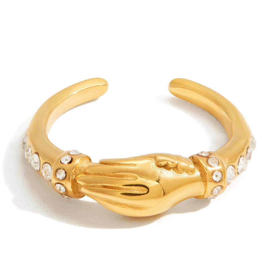 Friendship Hand Ring Titanium Steel Pave Setting Women's Jewelry Gift
