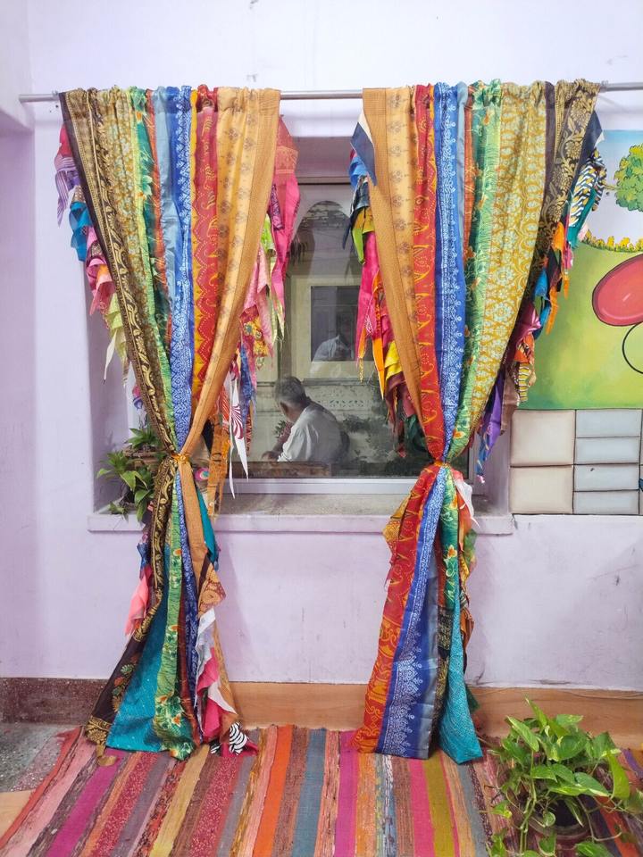 Fringe Curtains Door Drape Window Curtain Recycled Indian Silk Saree Curtain Boho Gypsy Hippie WallHanging Vintage Retro Window