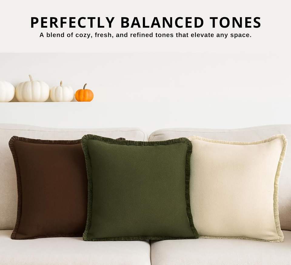 Fringe Throw Pillow Cover Decorative Cushion with Tassels Couch, Sofa, Bed, Farmhouse Home Decor Fall Thanksgiving-Olive Green