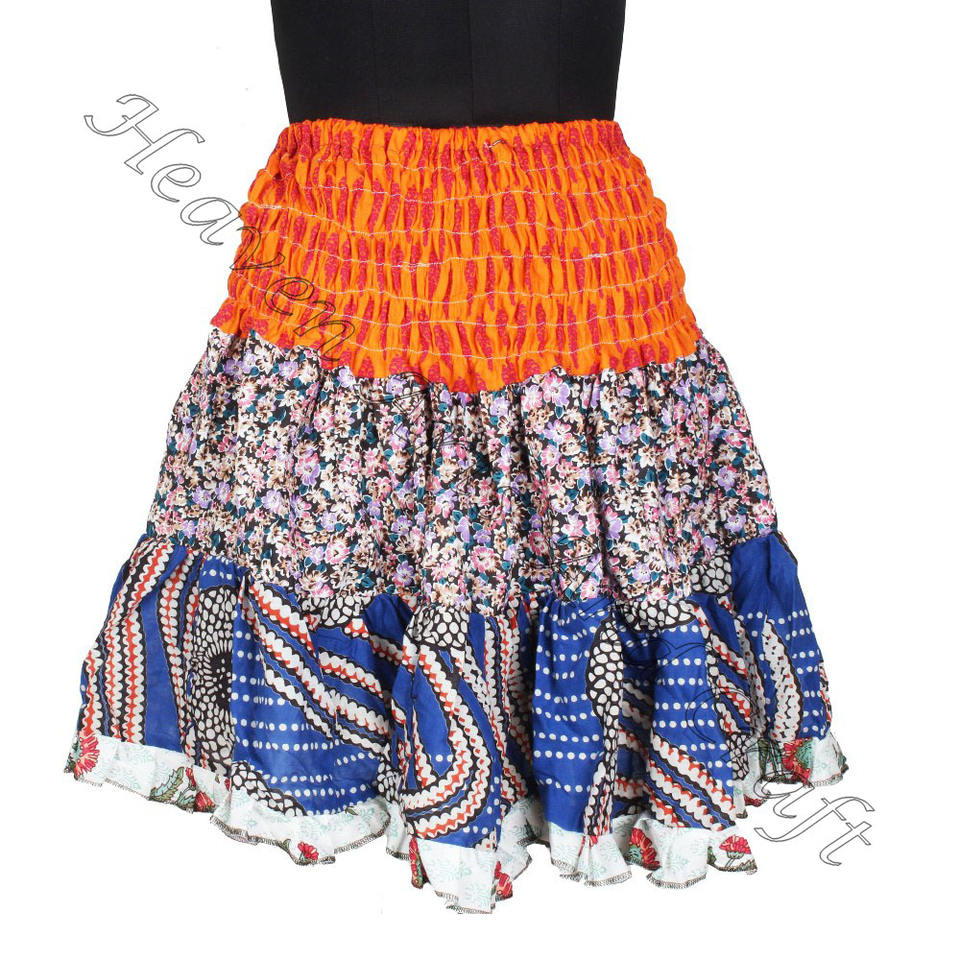 Keywords:Vintage Cotton Sari Patches Mini Skirt
