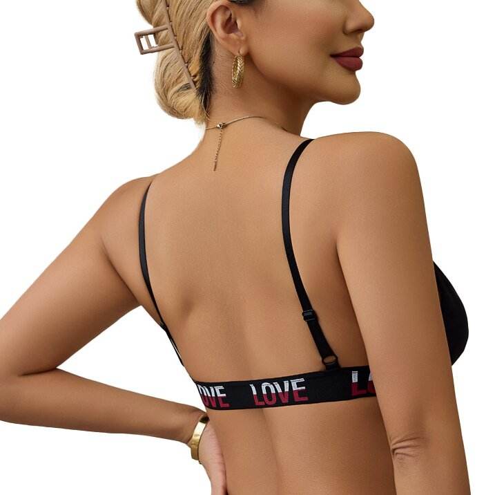 Front Closure Bra Women's BH Letter Push-Up Bra Deep V-shaped Triangle Cup Non-Steel Ring Bra for Plus Size Haus Industries