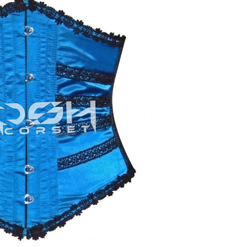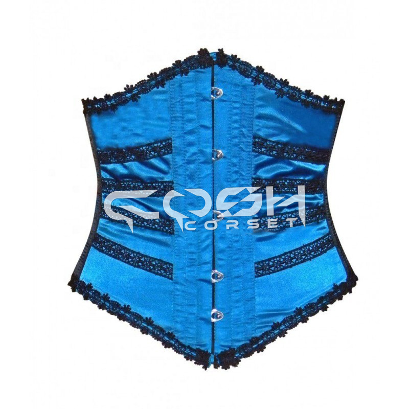 Front Lace Overlay Fashion Wear Blue Satin Underbust High Quality Steel Boned Waist Cincher Corset Manufacturer
