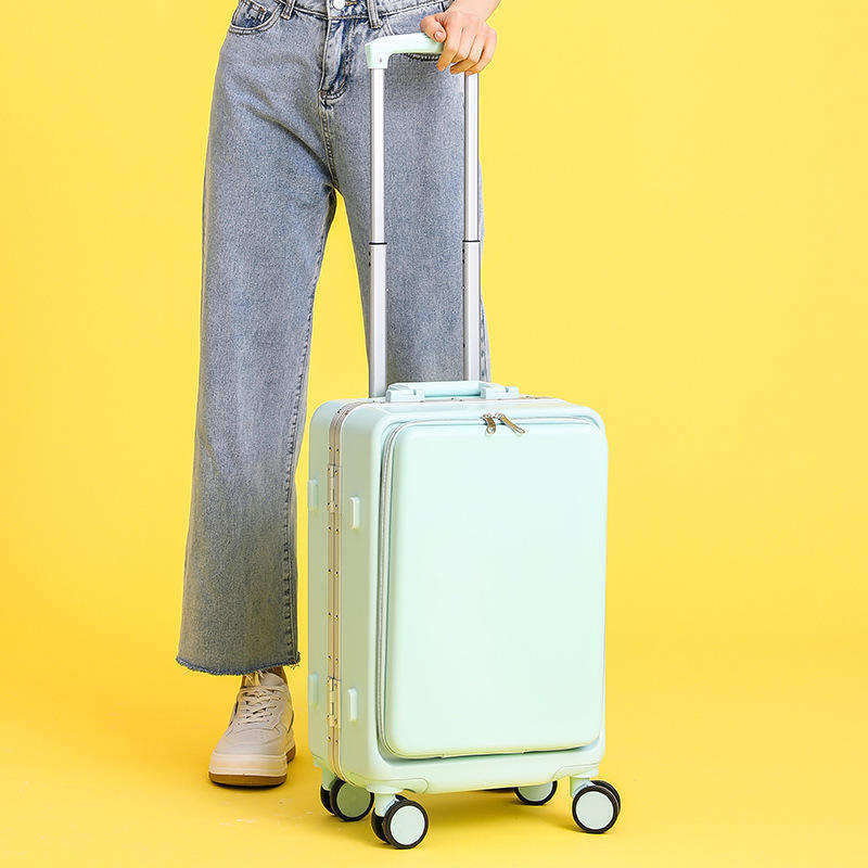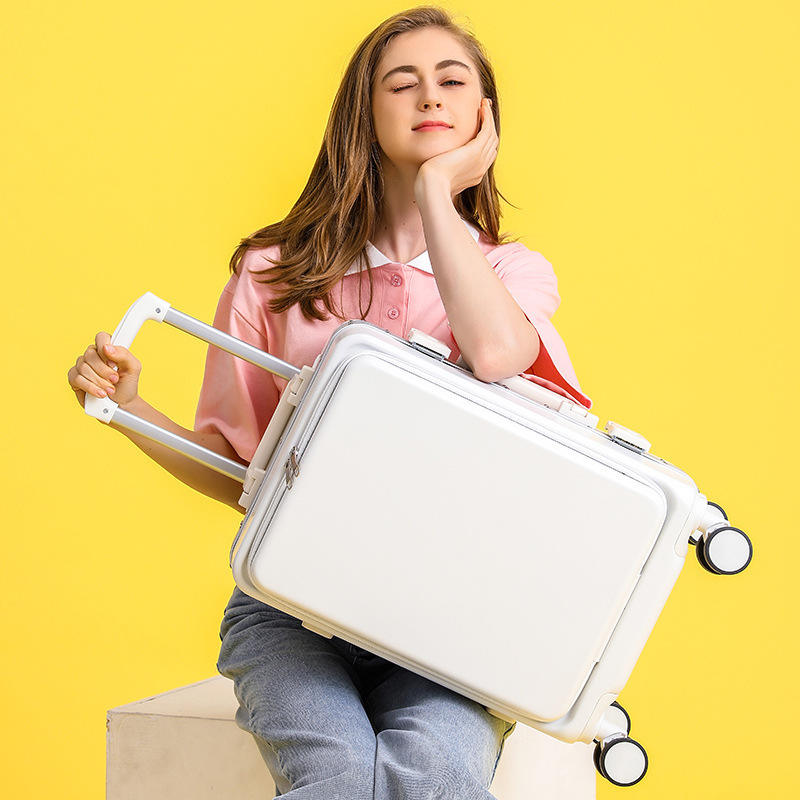 Front Opening Spinner Suitcase 26 Inch Carry On Trolley Case With 360 Degree Wheels For Business Travel Unisex Solid Color