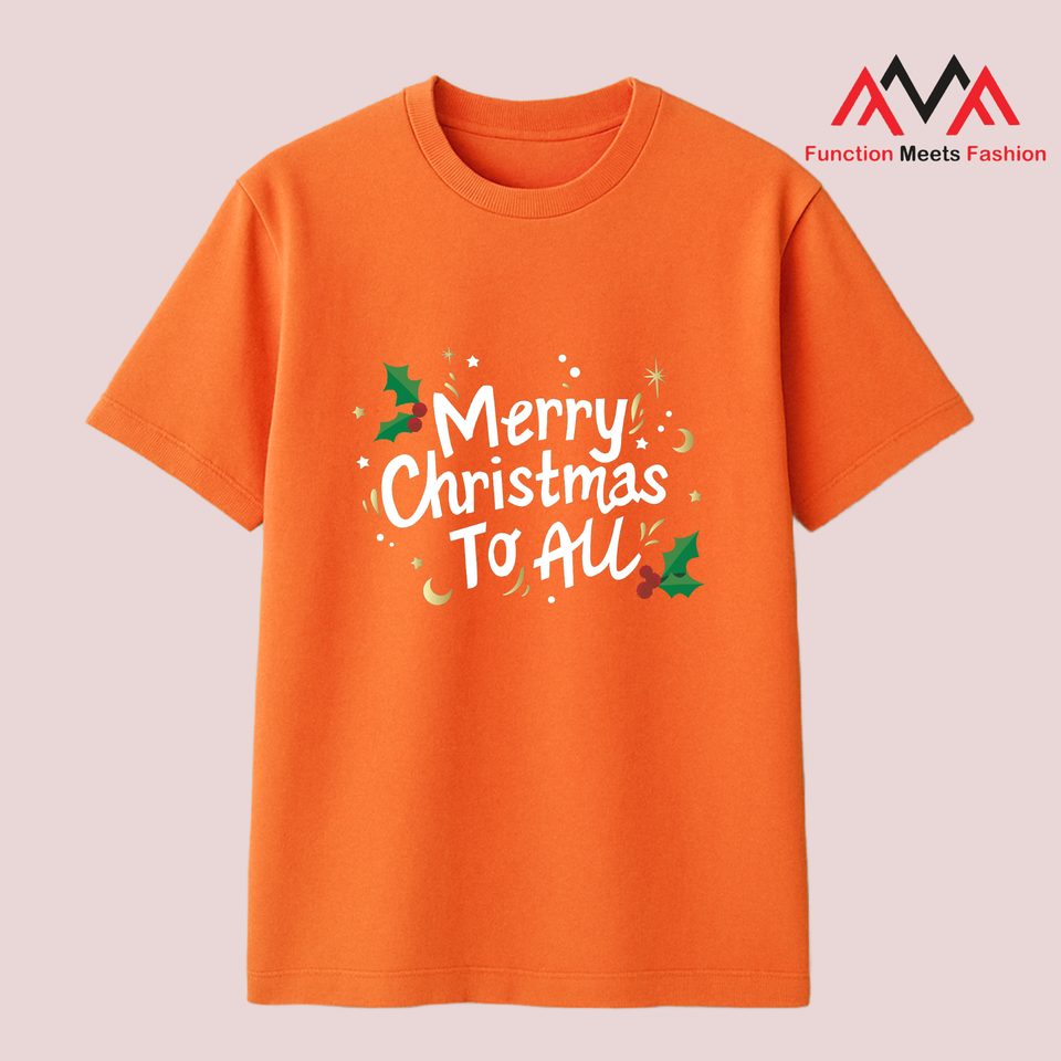 Front Printed Merry Christmas Graphic Print Short Sleeve Regular Fit Casual Vietnamese Orange TC (Terylene-Cotton Blend) Men's