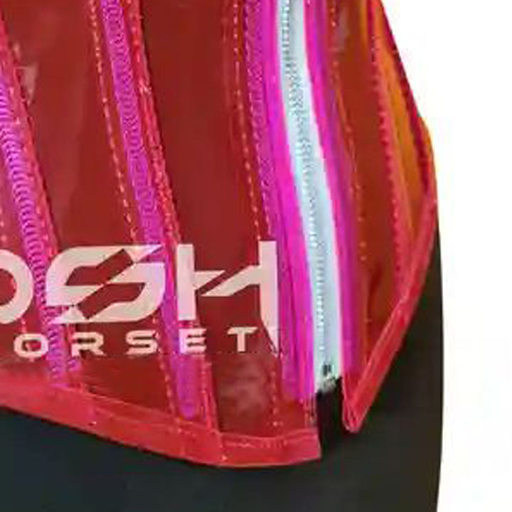 Hot Pink Transparent PVC Overbust Bustier Corset Top Front Zip up Breathable with Rivet Decoration Direct From Supplier