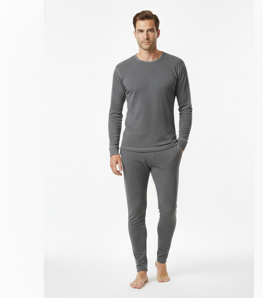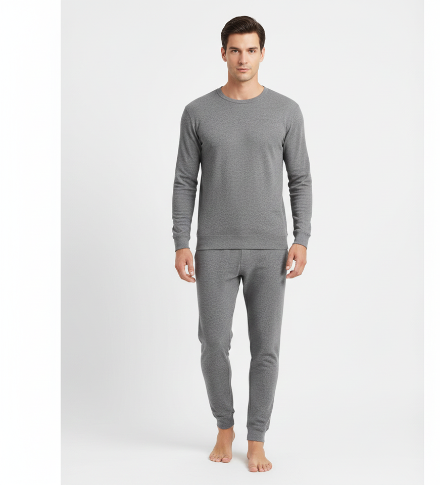 FrostLayer Grey Men Thermal Suit Soft Full Sleeve Breathable Fabric Providing Balanced Winter Warmth
