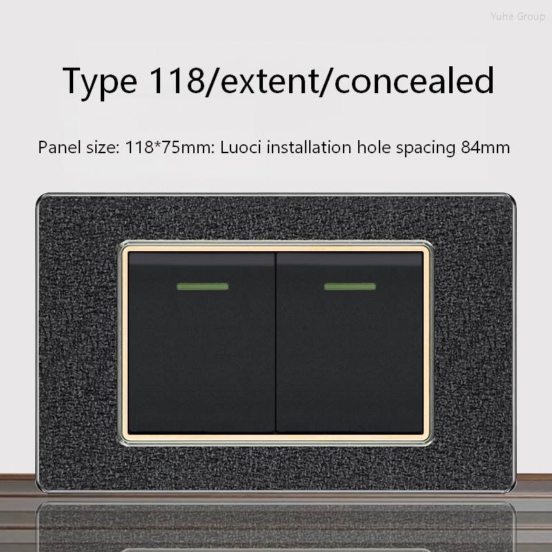 Frosted Black PC Touch Panel 2-Gang Durable 2 Sets One-way Straight-through LED Indicator Light 10A On/off Switch Stair Wall