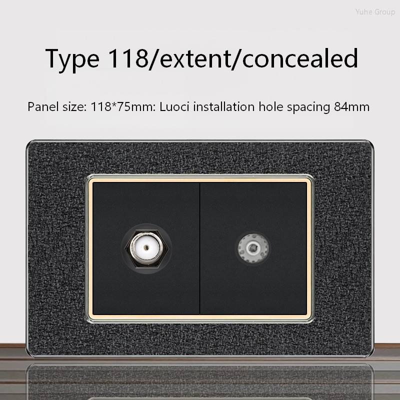 Frosted Black Touch Panel Modern Wall Switch Socket with TV and Computer Outlets for Home Office and Hotels