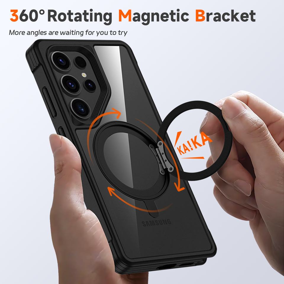 Frosted Clear Cell Phone Case with 360 Ring Holder Shockproof Shell Magnetic Wireless Charging Back Cover For Samsung S25 Ultra