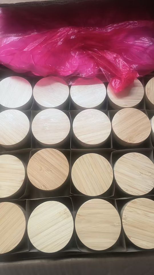 Frosted Glass Cosmetic Jar with Wooden Lid and Bamboo Components Amber Color