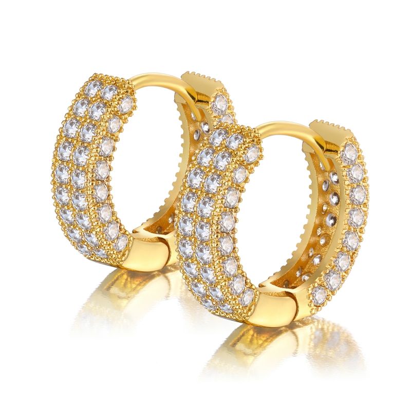 Frozen Sparkling Earrings Made of Brass with 18K Gold Plating, Double Row Zircon Diamond Hoop Earrings.