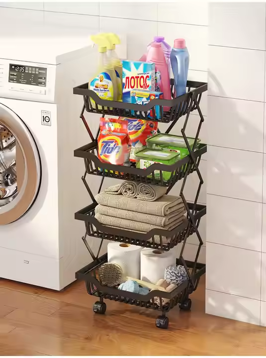 Fruit Basket Rack Kitchen Vegetable Basket Storage Cart Pantry Baskets with Wheels