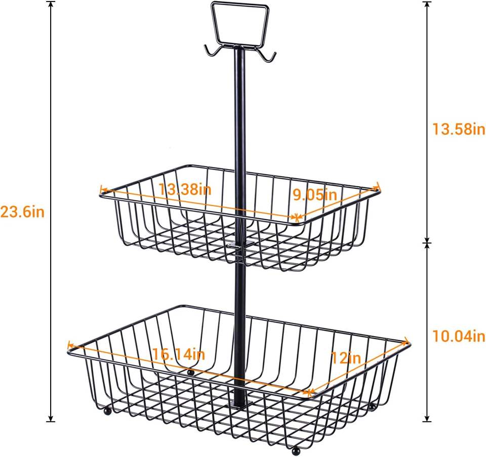 Fruit Basket Rectangular 2Tier Metal Kitchen Countertop Organization Snack Black For Kitchen Storage Handmade
