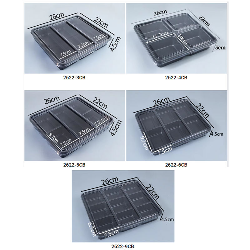 Fruit Cutting Boxes Platter Black Compartments Disposable Food Containers Multi-compartment Meal Packaging Box Combination Plate