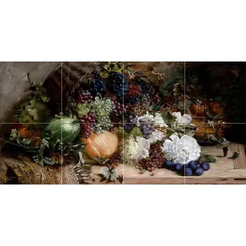 Fruit Grapes Peonies Kitchen Bathroom Wall Mural Marble Ceramic Backsplash Tile for Indoor Decor