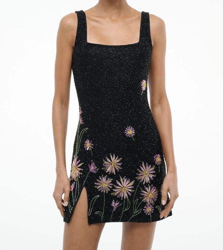 Fruit Pattern Seed Bead Embroidery Mini Dress Women Spaghetti Strap Sleeveless Black Bodycon Party Sequin Detailing