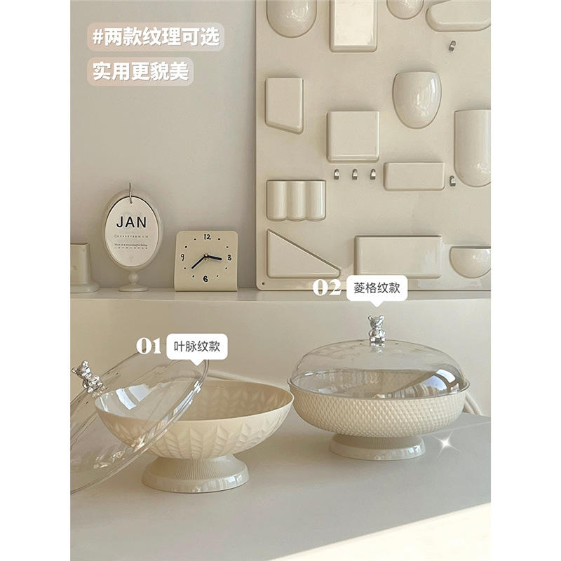 Fruit Plate With Lid Geometric Pattern Round Plastic 25.8cm For Coffee Table Dining Decorative Tray High End Snack Dish