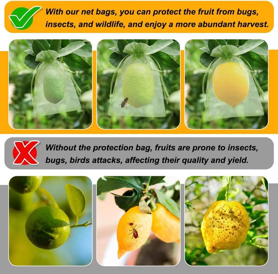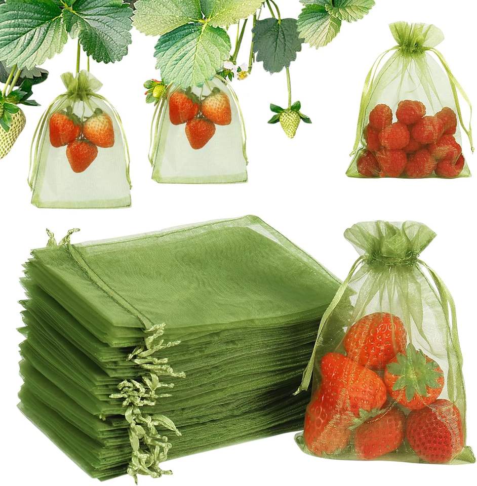 Fruit Protection Bags, 4x6 Inch Green Strawberry Netting Covers, Drawstring Mesh Bags, Pest Barrier for Blueberries