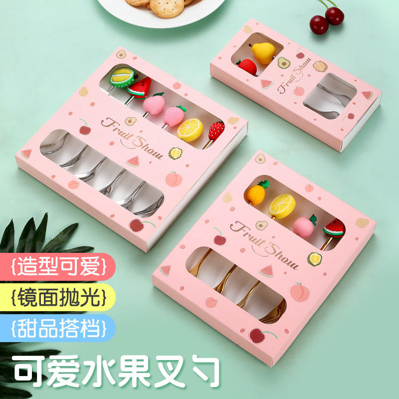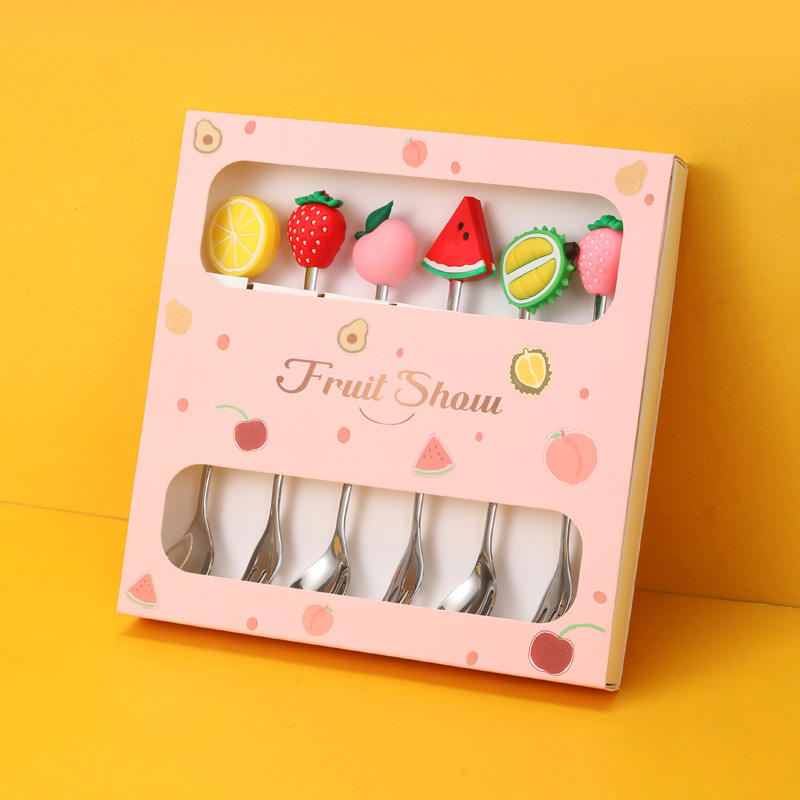 Fruit Show Stainless Steel Spoon And Fork Set Cartoon Fruit Design Reusable Dessert Utensils For Adults