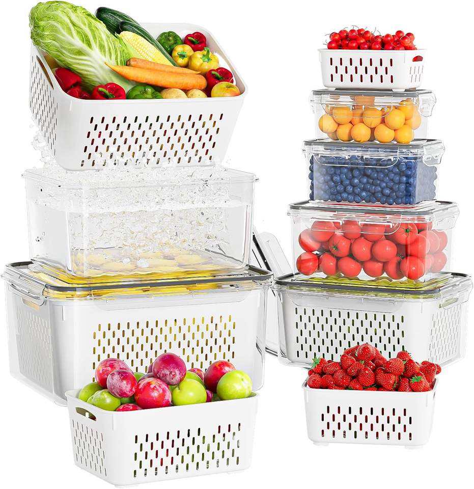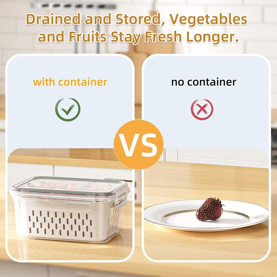 Fruit Storage Containers for Fridge Removable Colanders Lids-Back School Food Storage Borosilicate Glass Freshness Preservation