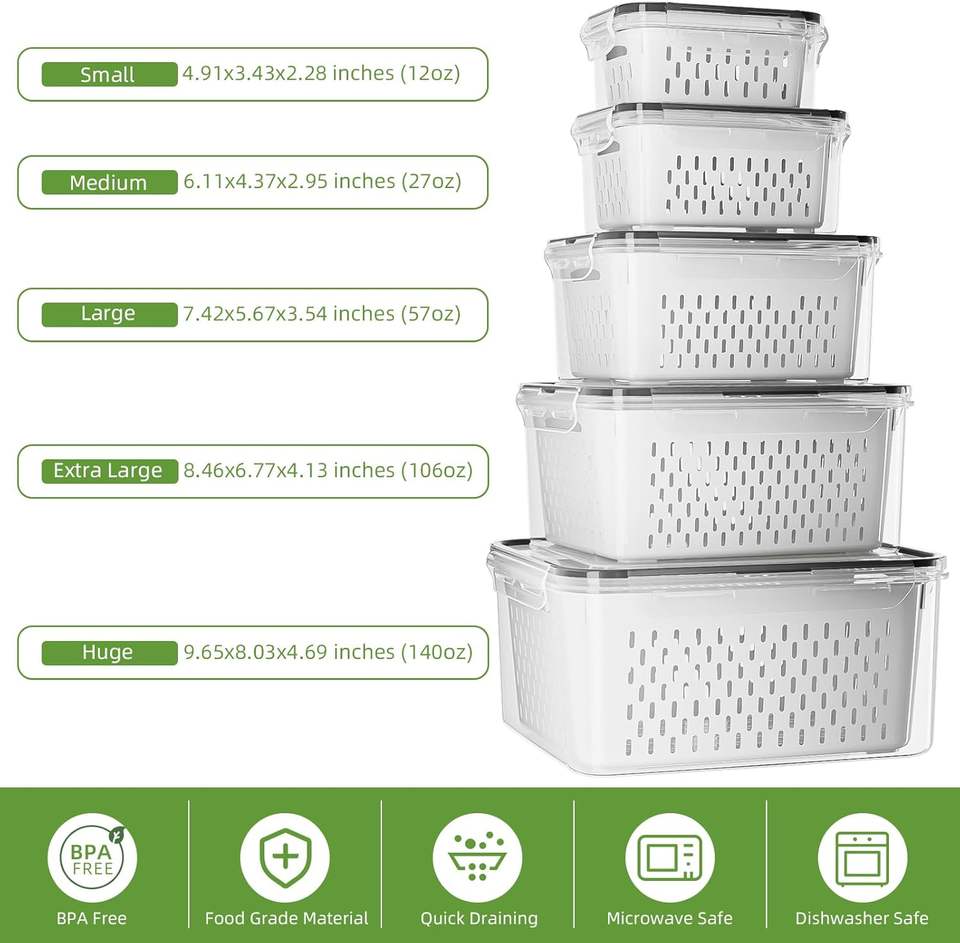 Fresh Produce Saver Plastic Vegetable and Fruit Storage Organizers Refrigerator Food Lettuce Keeper Containers