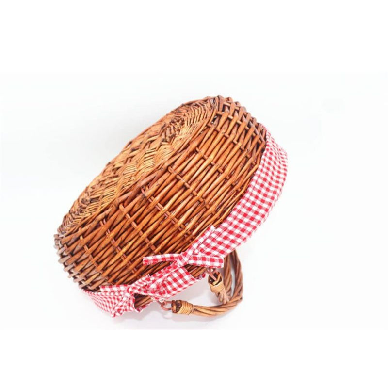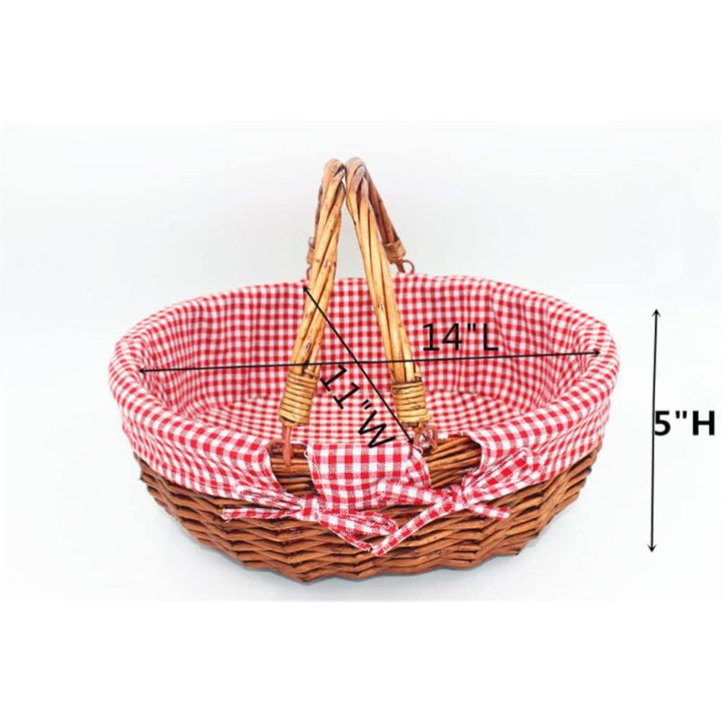 Fruit basket large oval woven detachable linen lining gift wicker fruit basket with double drooping handles