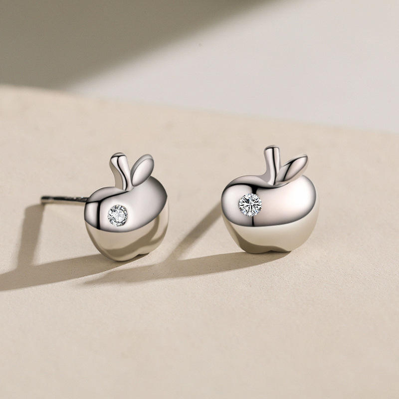 Customizable copper version Fruit-inspired S925 sterling silver round-cut zircon apple earrings,a Valentine's Day gift for women