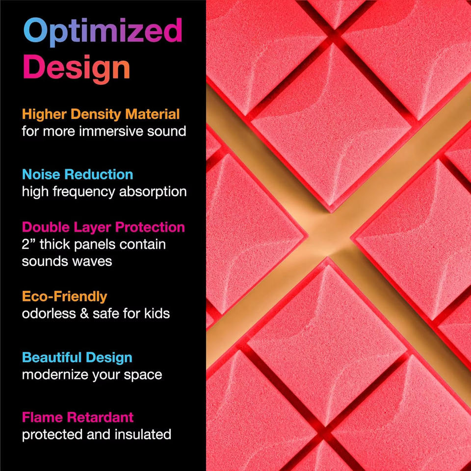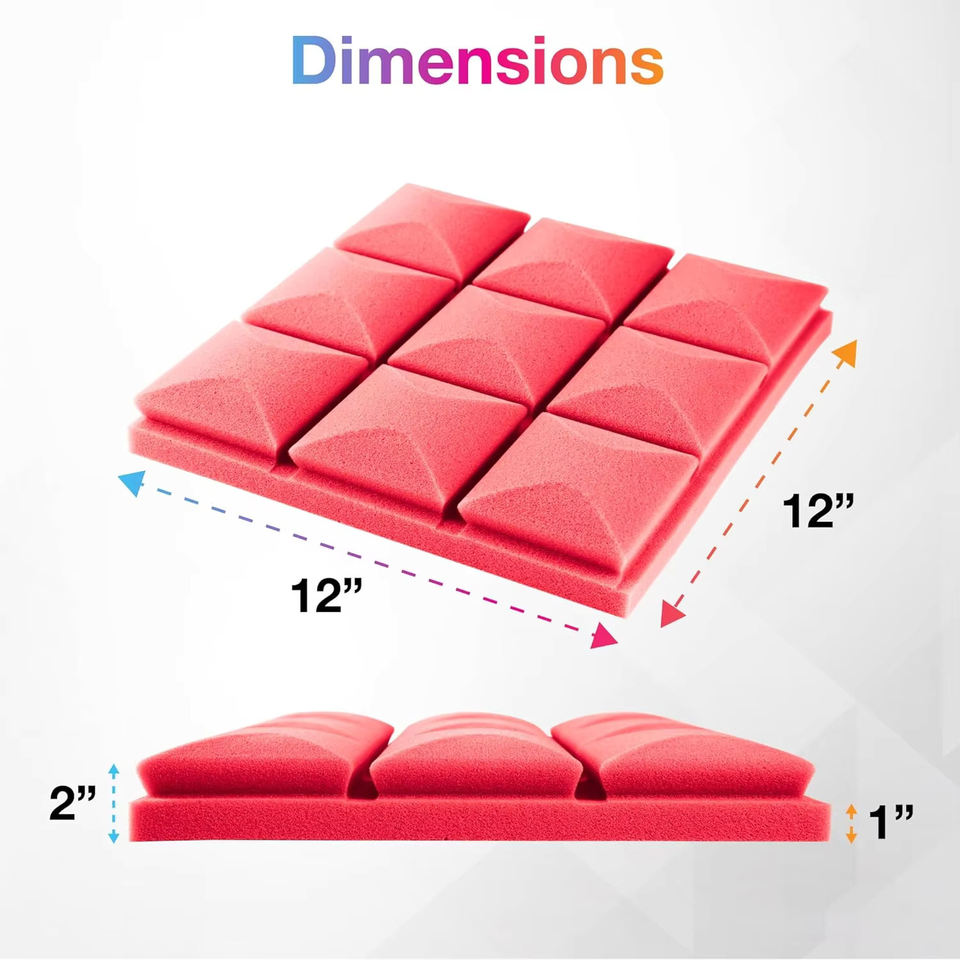 Acoustic Foam Panels 12-Pack Red Mini Square Modern Design Soundproofing Panels 2'' X 12'' X 12'' Gym & Living Room Use