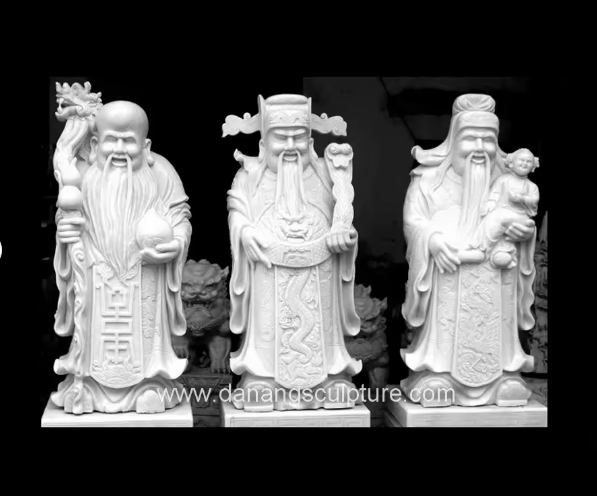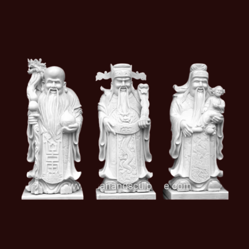 Fu Lu Shou Happiness, Luck and Longevity Gods Stone Statue Natural Stone Buddha Statue - DSF-P023