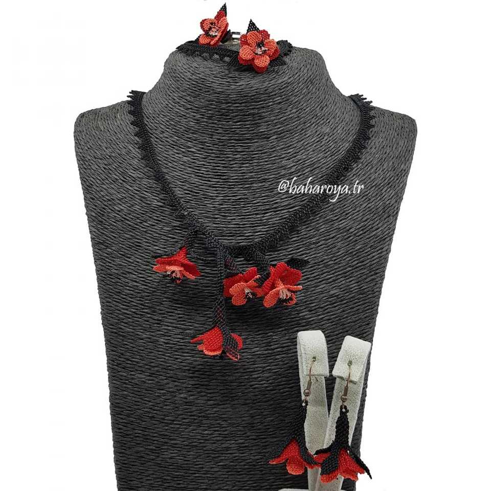 Fuchsia Needle Lace Necklace-Earring-Bracelet-Ring Set Red with Gold Plating Diamond for Party or Gift White Gold Material