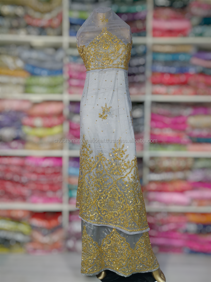 Feature:Heavy Beaded Net Lace + Silk Fabric