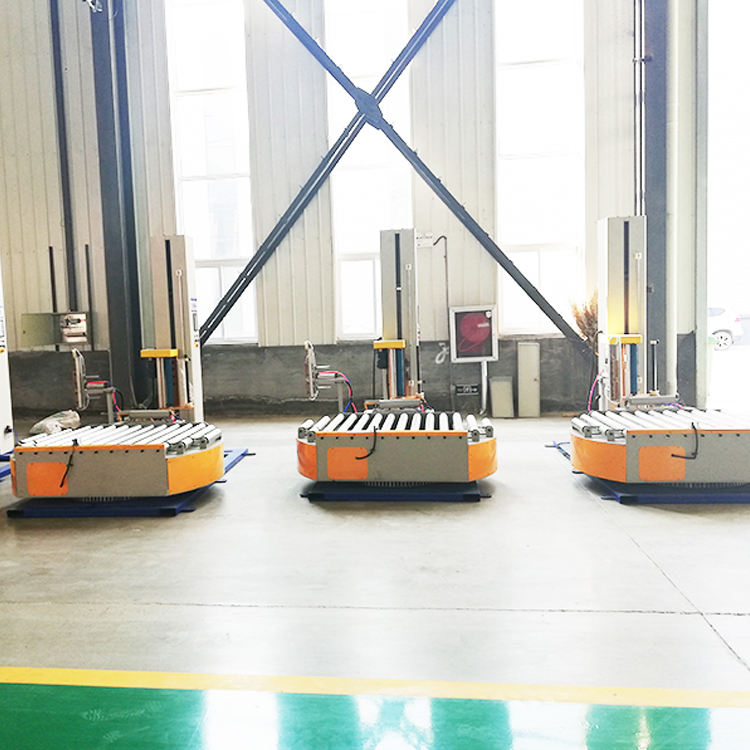Full Auto Pallet Stretch Wrapping Machine With Roller Conveyor Automatic Wrapping Machine