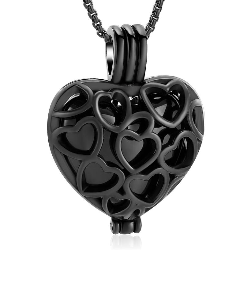 Full Black Color Memorial Cremation Jewelry urn Eternal Heart Locket Necklace With Mini Urn For Ashes Loved One Custom Size