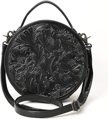 Full Black Round Bag High Quality Cowhide Floral Hand Tooled Designer Western Canteen Bag Hand Carving Bag at Best Price
