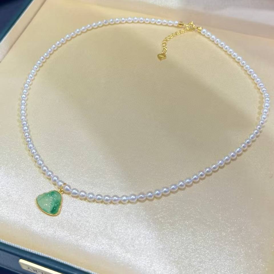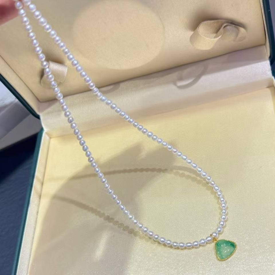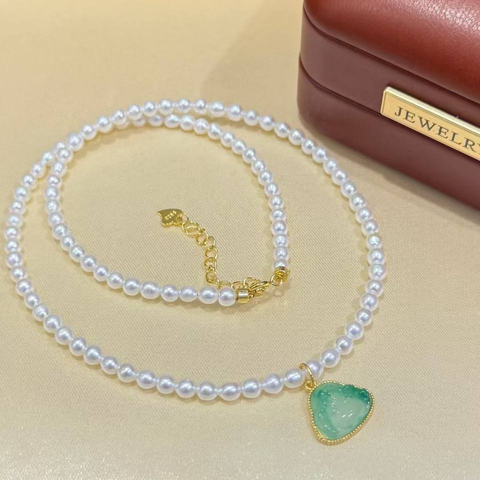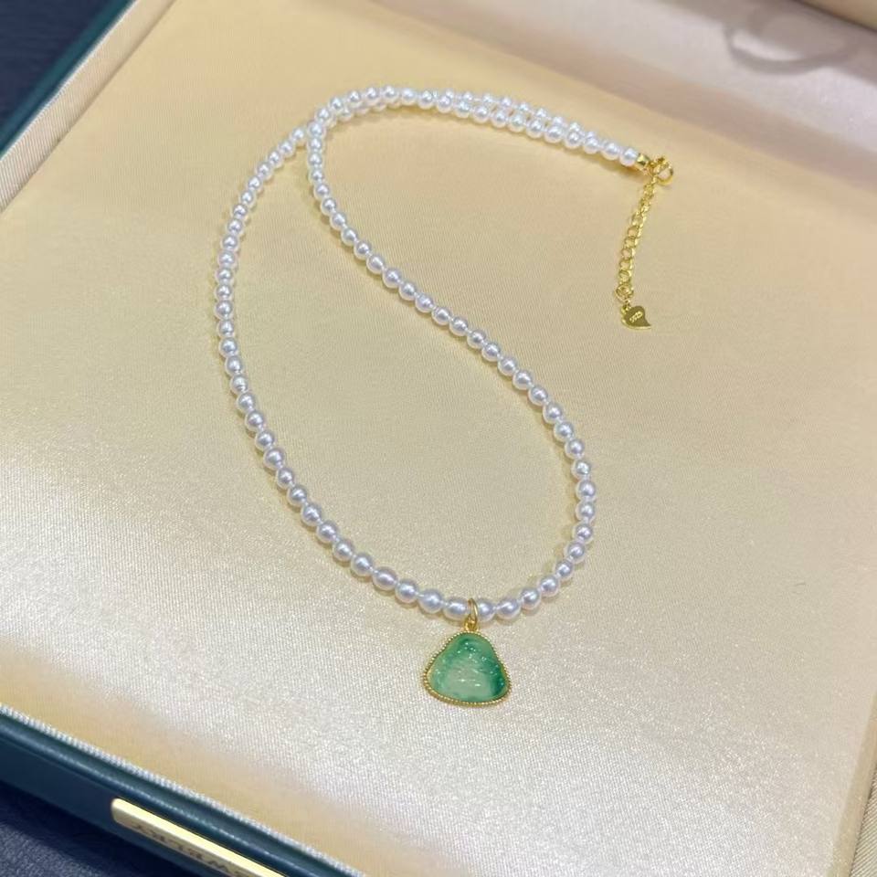 Full Body Pure Silver Accessories Fine Pendant Necklaces with Pearl & Chalcedony Nearly Round Strong Light Slight Flaws Fulu