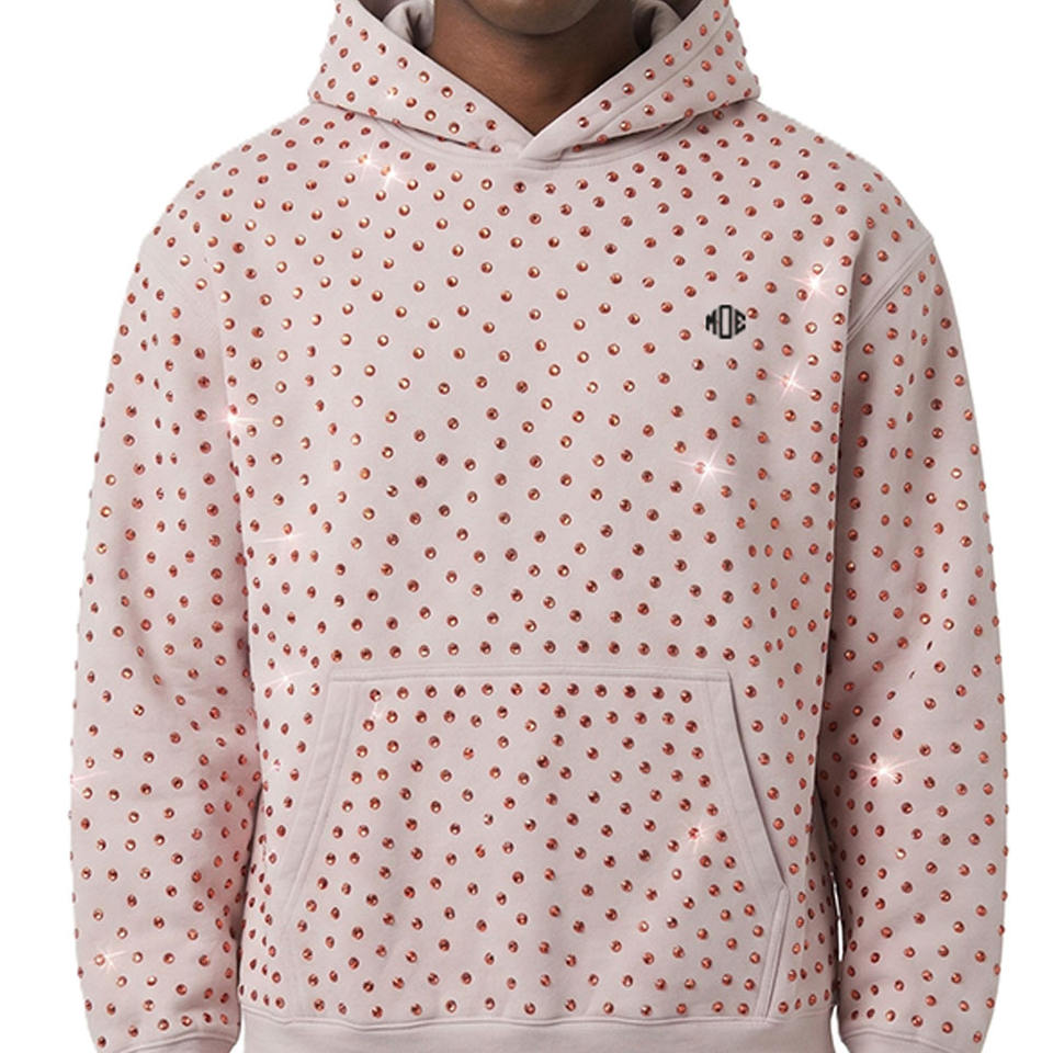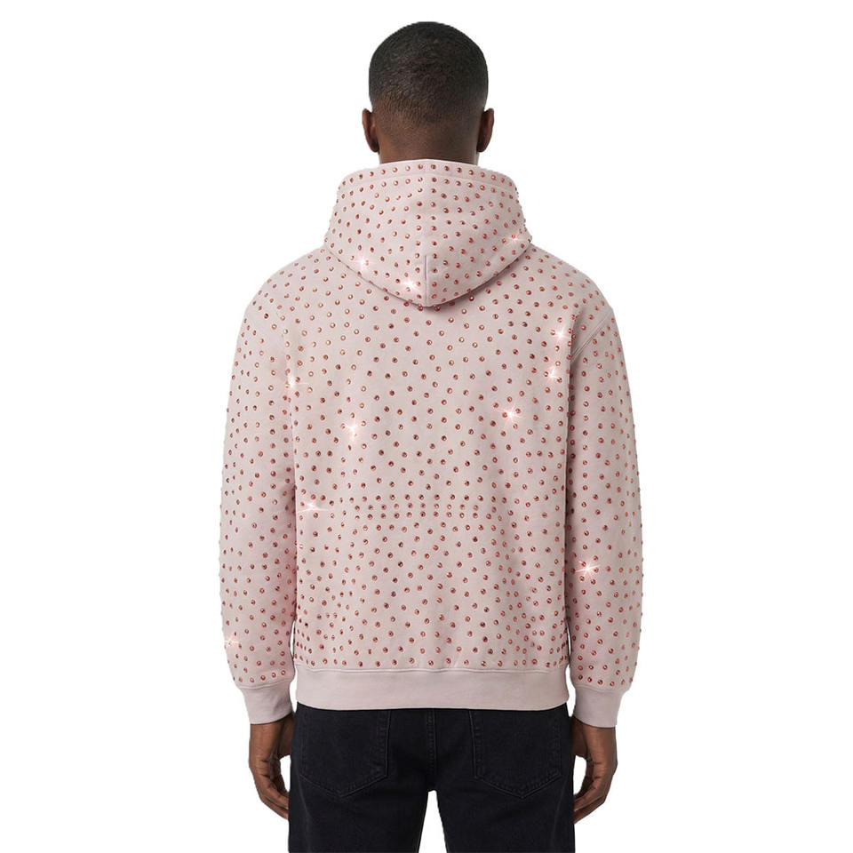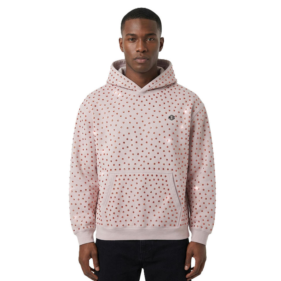 Full Coverage Rhinestone Hoodies for Men Cotton Fleece Pullover Streetwear Oversized Fit Heavy Fabric Casual Wear Custom Logo