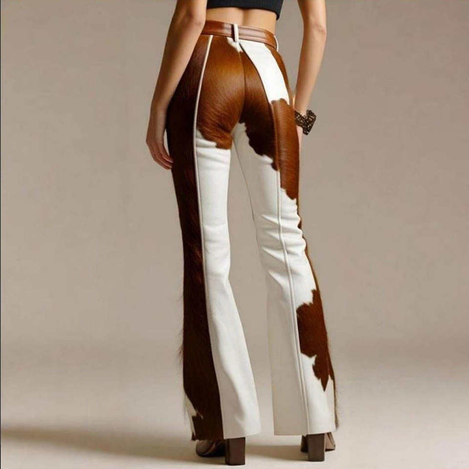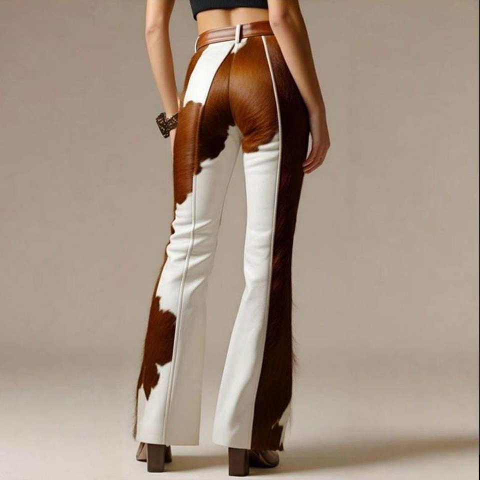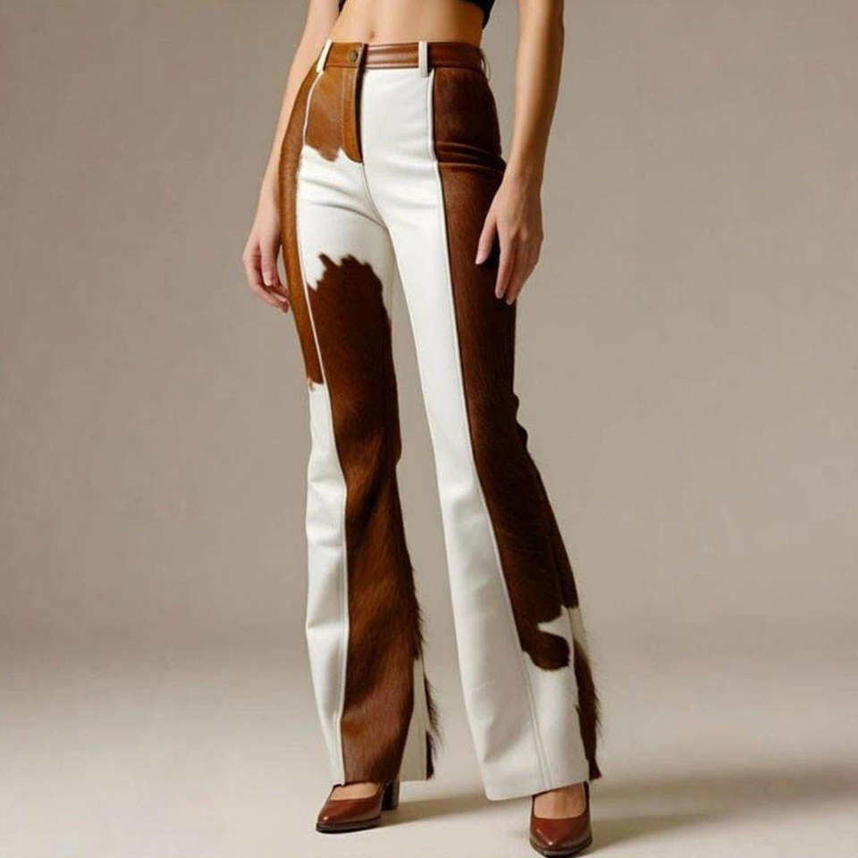 2025 Trending Women's Full Custom Made High Quality Eco-Friendly Leather Pants Hair-On-Hide Flat Front Style Wide Leg Winter