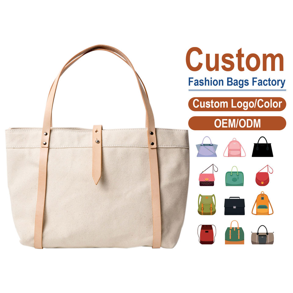 Full Custom Plain Canvas Tote Bag Vegetable Tanned Cow Leather Handles Waterproof Eco-friendly Summer Autumn Women's Shopping
