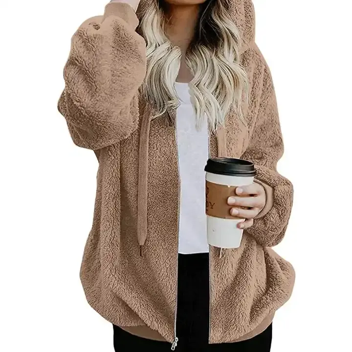 Full Custom Plus Size Wholesale Fuzzy Plus Size Women's Winter Fluffy Fur Sweatshirt Hoodie Jumper Cardigan Hooded Tops Pullover