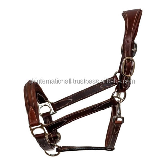 Full Customized Ergonomic Padded English Saddle Leather Horse Halter Dual Sided Snaps Chrome Hardware Halter Horse in Full Cob