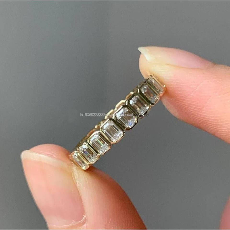 Full Eternity Bezel Set Emerald Cut Moissanite Women's Wedding & Anniversary Band 925 Sterling Silver Stackable Minimalist Ring