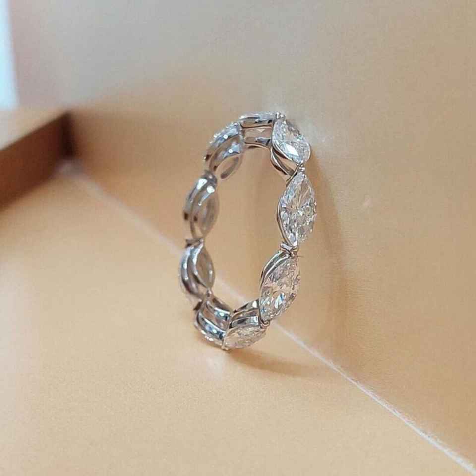 Full Eternity Marquise Cut Moissanite Diamond Ring Original 925 Silver for Anniversary Party Promise Gift for Fine Ring