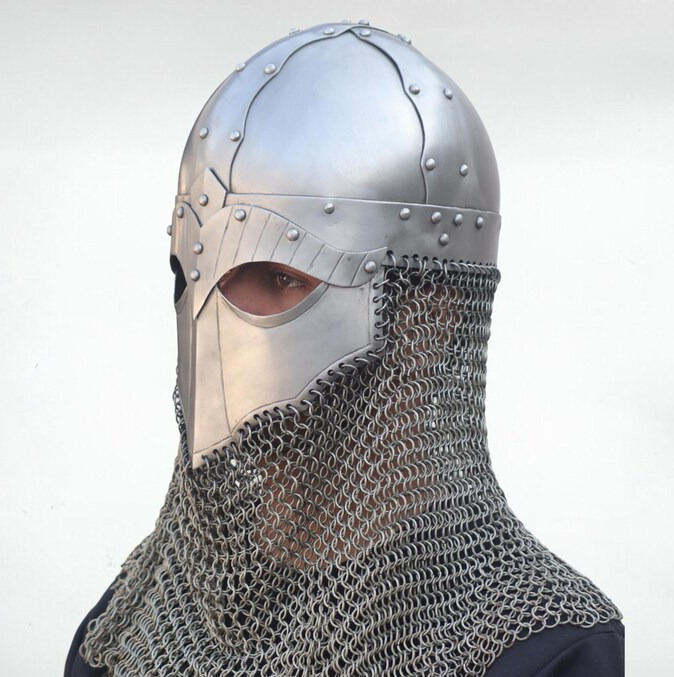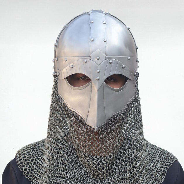 Full Face Medieval Armor Helmet Cosplay Reenactment Display Viking Chainmail Aventail Mild Steel Collectible Metal Crafts