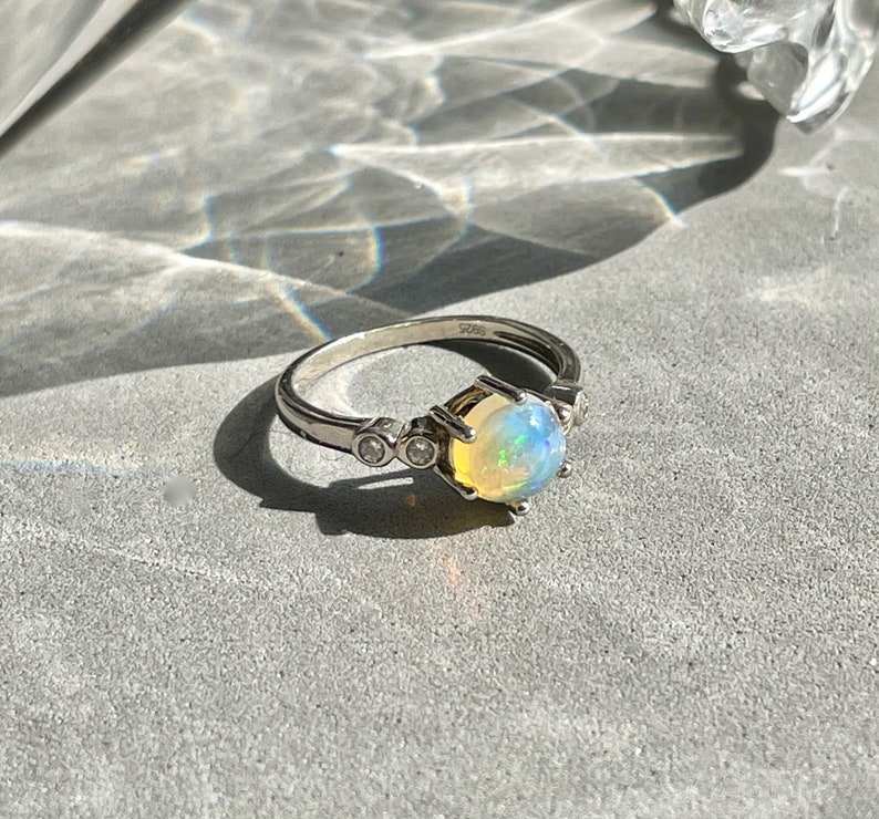 Full Flash Ethiopian Opal Cubic Zirconia Ring 925 Sterling Silver Elegant Handmade Sparkling Statement Jewelry