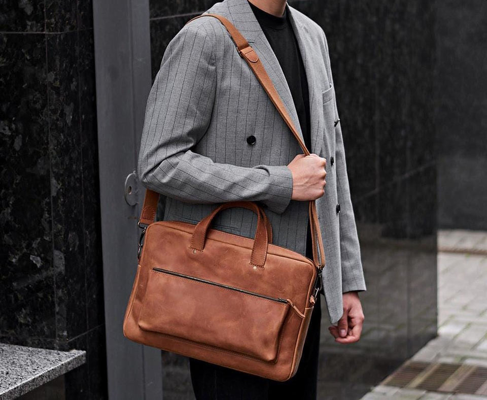 Full Grain Leather Men Laptop Bag Wholesale OEM Custom Logo Briefcase Business Travel Messenger Shoulder Tote LPG-0276