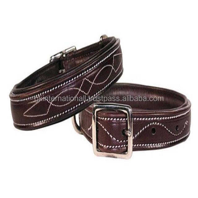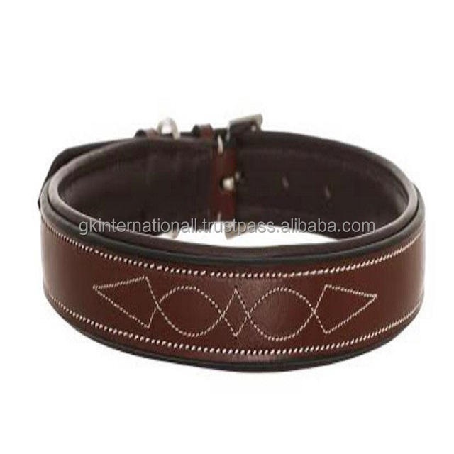 Full Grain Naturally Tanned Premium Leather Dog Collar Designer White Stitching with Nickel Plated Stainless Steel Hardware