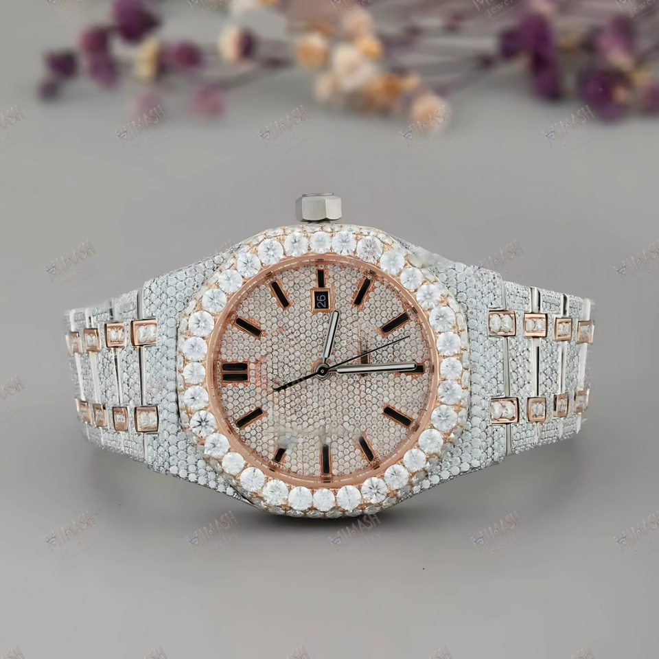 Full Iced Lab Grown Diamond Watch Luxury Moissnite Diamond Hip Hop Watch for Men Fashion Jewelry 18k Rose Gold and White Gold
