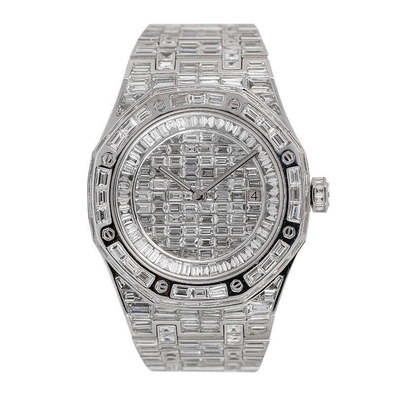 Full Iced Out Baguette Cut Diamond Watch for Men, Gold Hip Hop Style Birthday Gift Wrist Watch