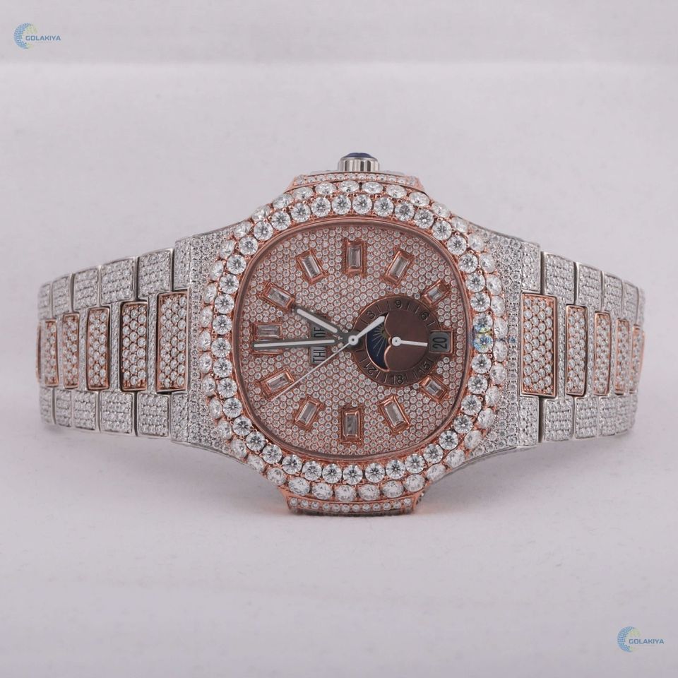 Full Iced Out Colorless Lab Grown Diamond Watch For Men Dual Tone Casual Wear Wrist Watch Rapper Style Hip Hop Watch